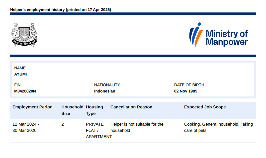 * Take note that this information is generated automatically and should only be taken as reference and not to be solely relied on when hiring a maid.