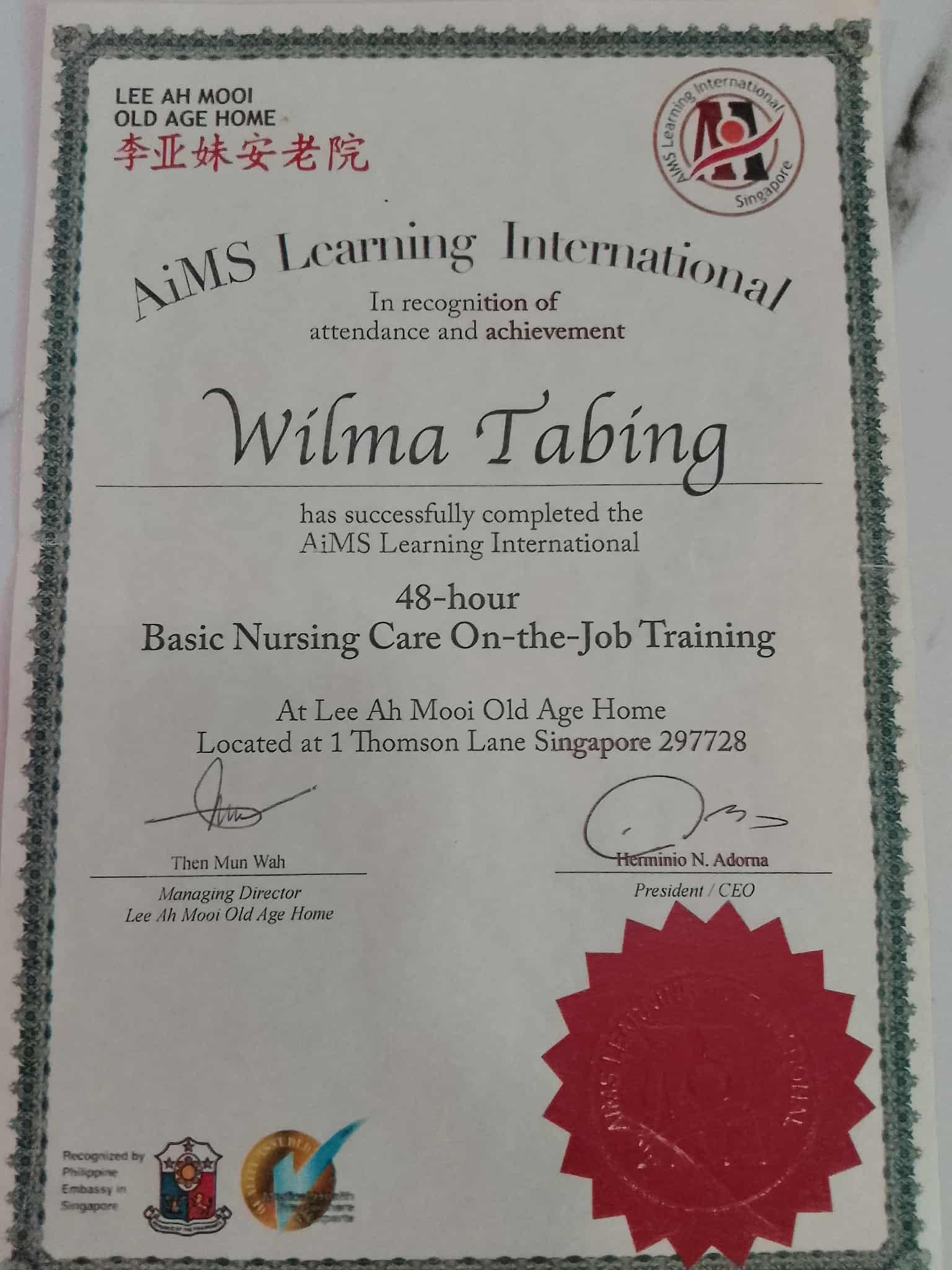 - Duties detail: Took care of bedridden 21 y/o together with another caregiver, general household chores and cooking