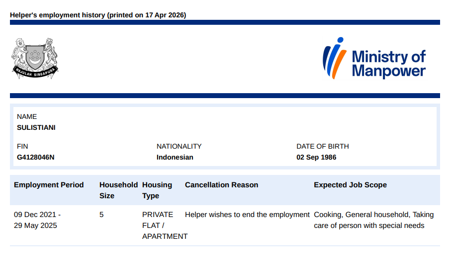 * Take note that this information is generated automatically and should only be taken as reference and not to be solely relied on when hiring a maid.