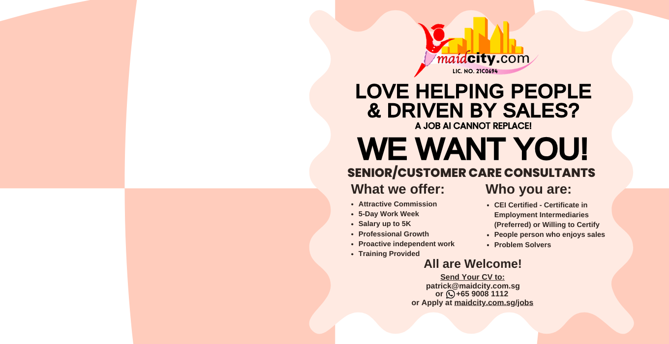 “First came across Maidcity in July 2024 when we were urgently seeking a helper to look after my mother. They were quick to respond to my enquiries, took the time to understand our needs, and was able to provide advice and recommendations. Serene was patient and clear in her explanation of the process and administrative matters. Our first helper was confirmed within 1.5 weeks and worked for us for almost 6 months; due to unforeseen circumstances, we had to look for a new helper who joined us within a week of confirmation. The transition process was smooth and Serene and her admin team were efficient in the administrative work. They also followed up with us and shared feedback that would help us better manage our new helper. The family is grateful and appreciate the efforts put in by Serene and admin team and we recommend Maidcity for a fuss-free MDW employment process.”
