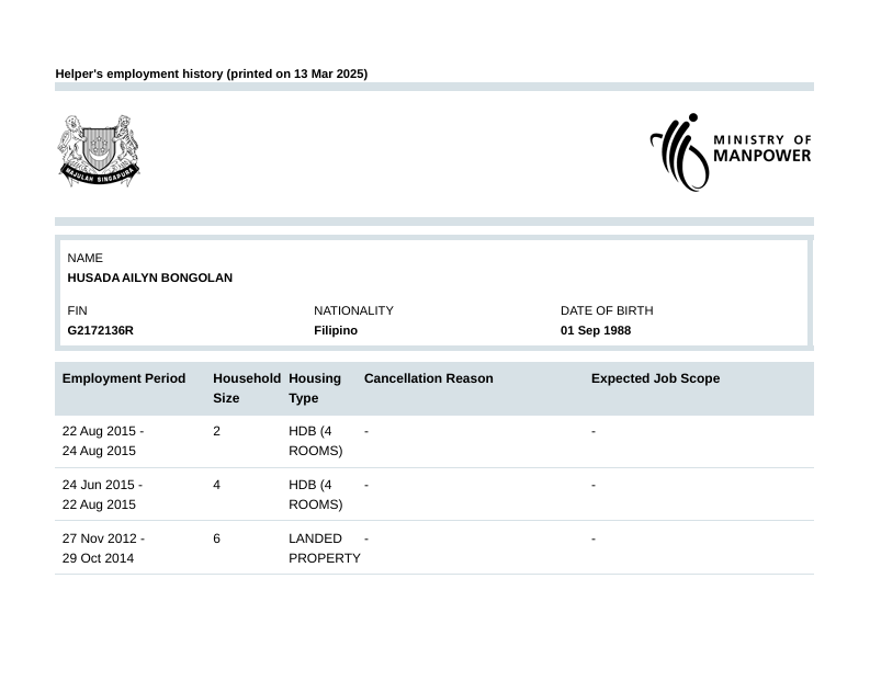 * Take note that this information is generated automatically and should only be taken as reference and not to be solely relied on when hiring a maid.